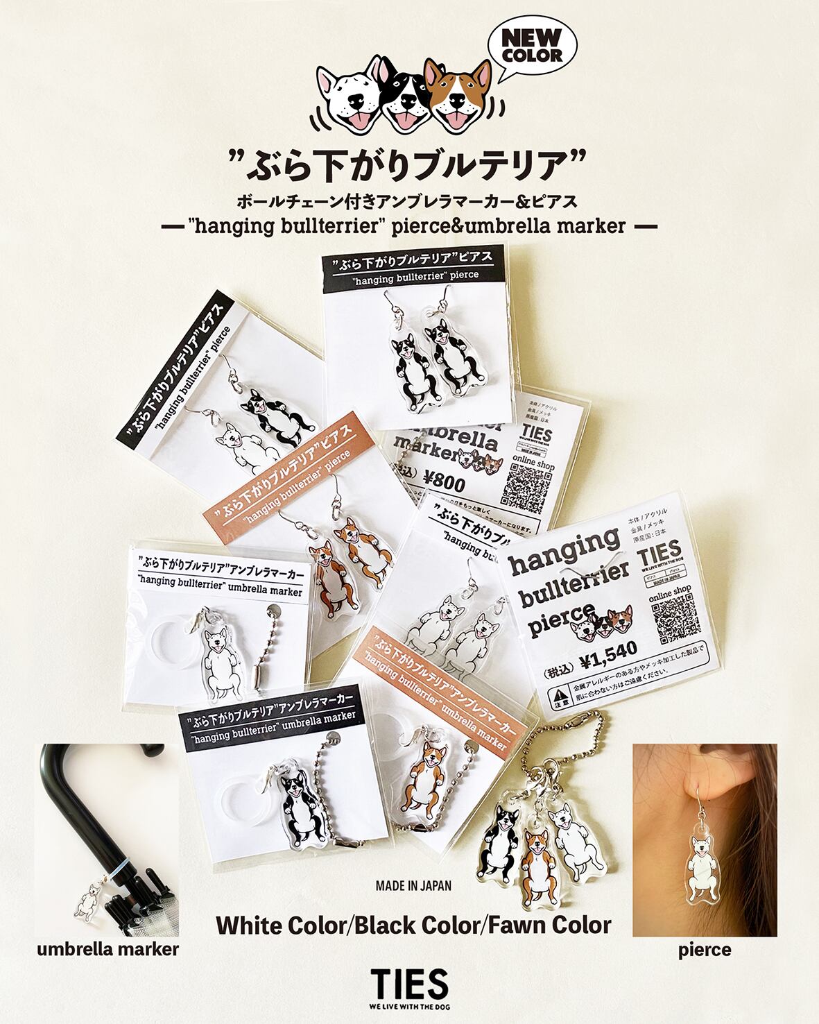 " hanging bullterrier pierce " White x Black Color set