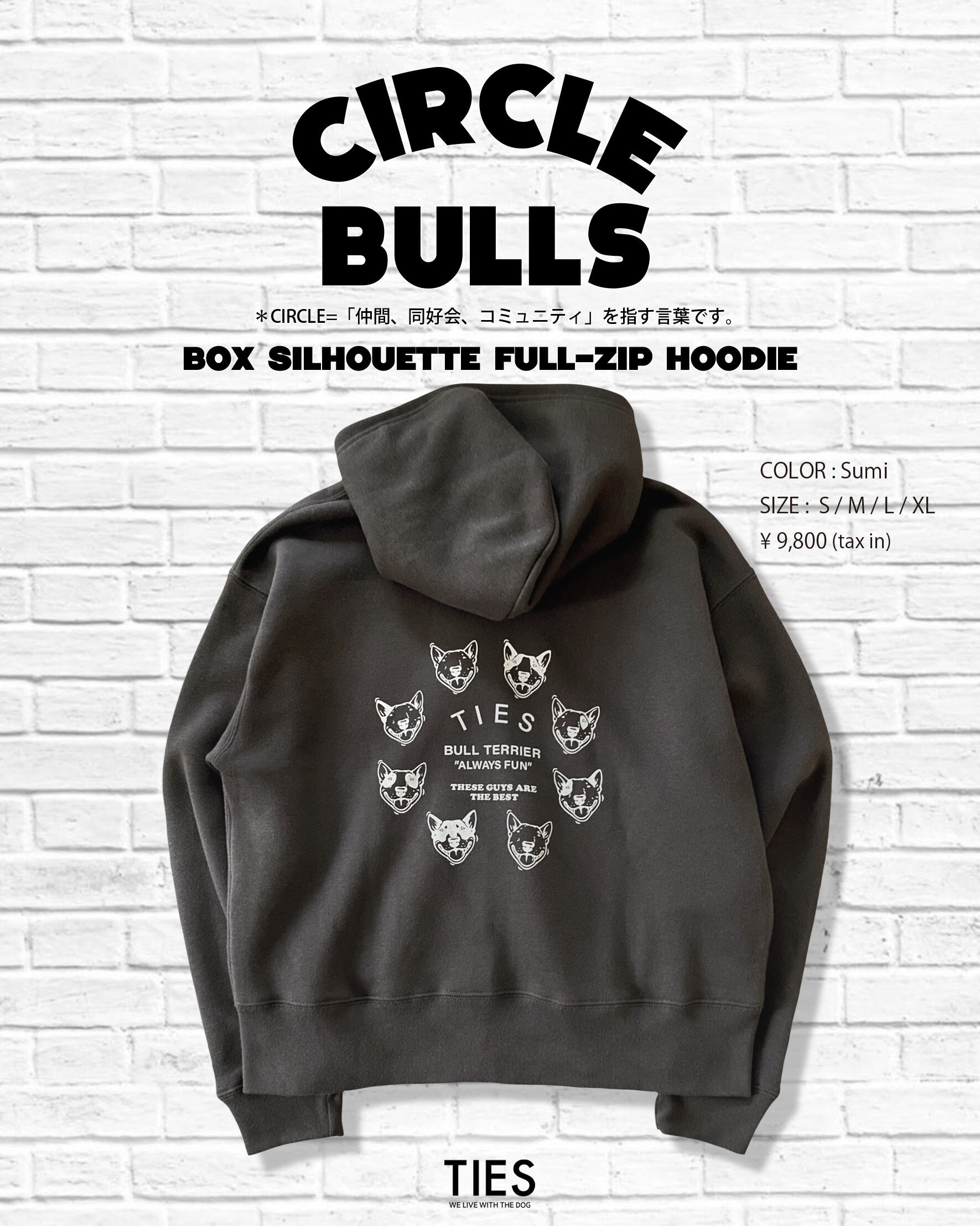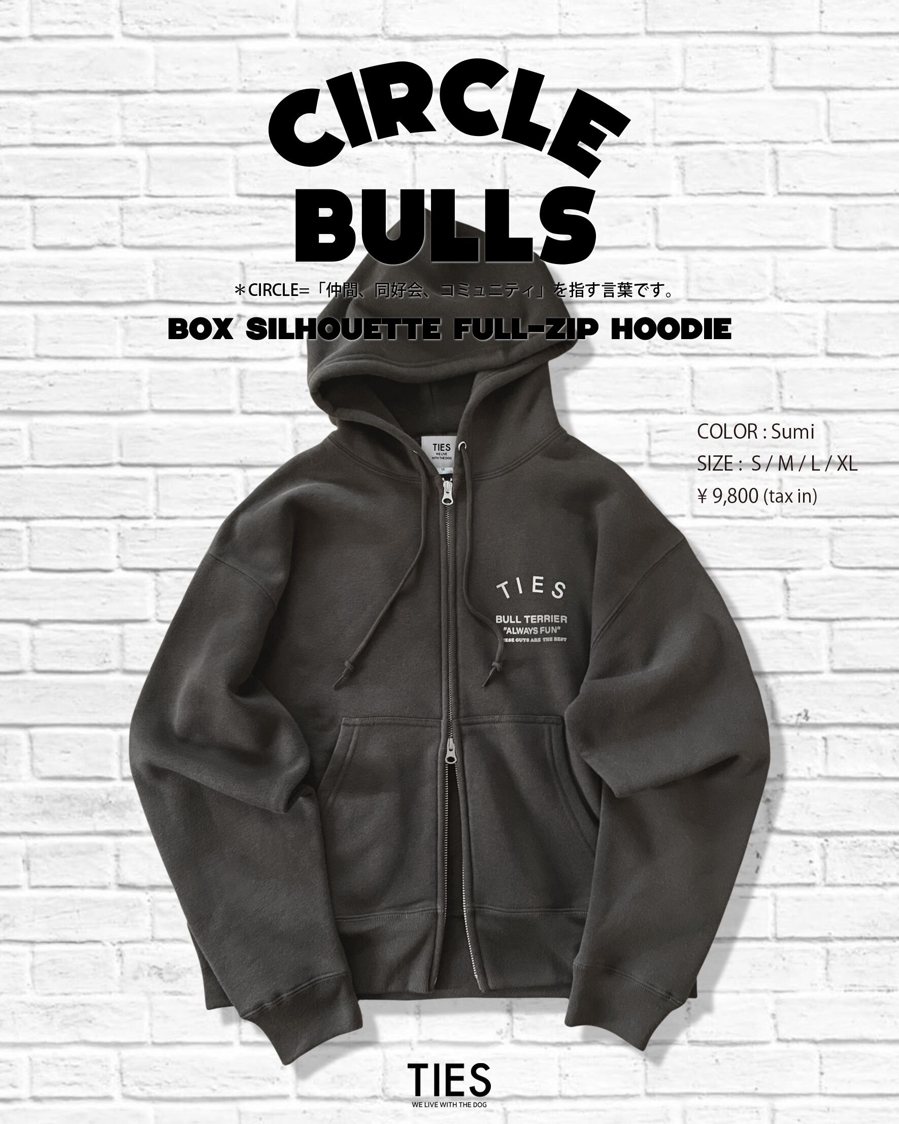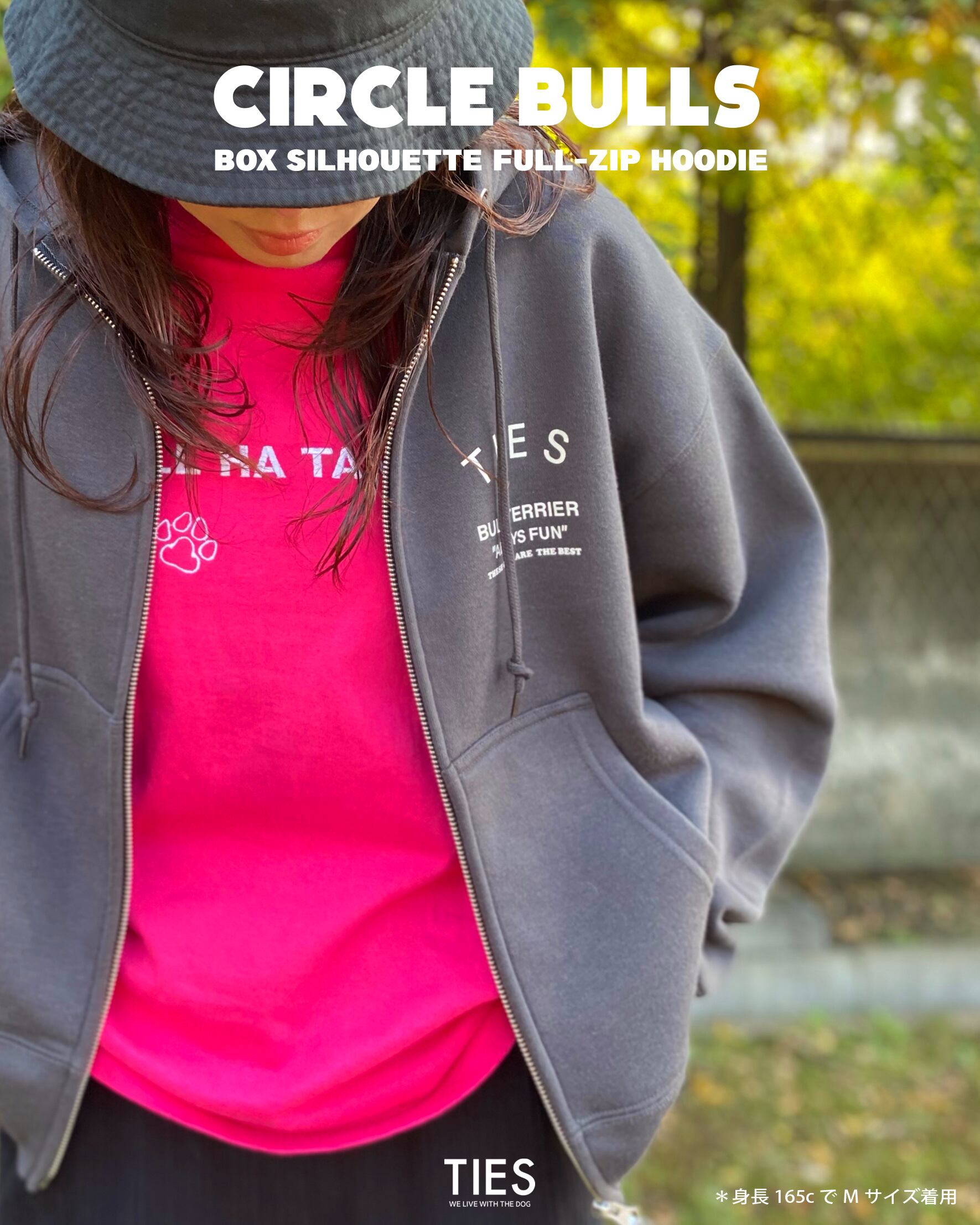 " CIRCLE BULLS " BOX SILHOUETTE FULL-ZIP HOODIE sumi