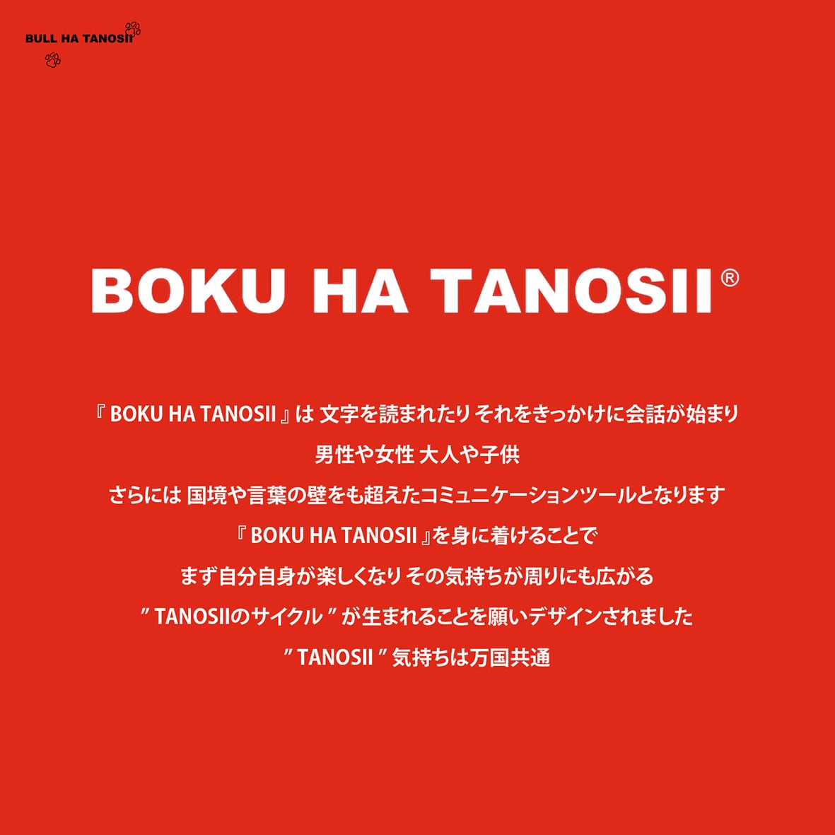 デザインはBOKU HA TANOSIIをベースにBOKUが"BULL"に代わり"人も犬も楽しい"を犬の足跡で表現